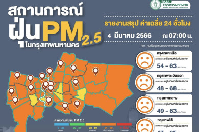 น่าห่วง! ฝุ่นพิษเกินเกณฑ์ 15 พื้นที่ ค่าเฉลี่ย 33-73 มคก./ลบ.ม. แนวโน้มสูงขึ้น ลดกิจกรรมกลางแจ้ง