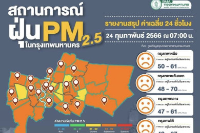 ฝุ่นพิษเกินมาตรฐาน 52 พื้นที่ เพชรเกษมสูงสุด 83 มคก./ลบ.ม.คุณภาพอากาศเริ่มกระทบสุขภาพ