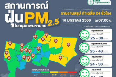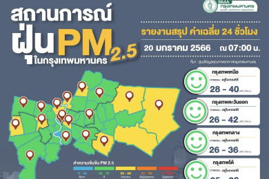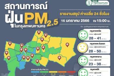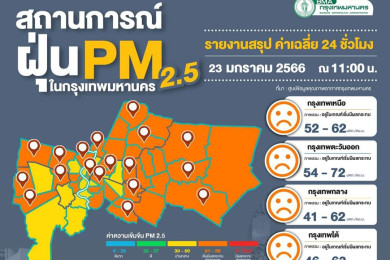 งดกิจกรรมกลางแจ้ง!! กทม.ฝุ่น PM2.5 เพิ่มขึ้นกระทบสุขภาพ 45 พื้นที่แนวโน้มเพิ่มขึ้น