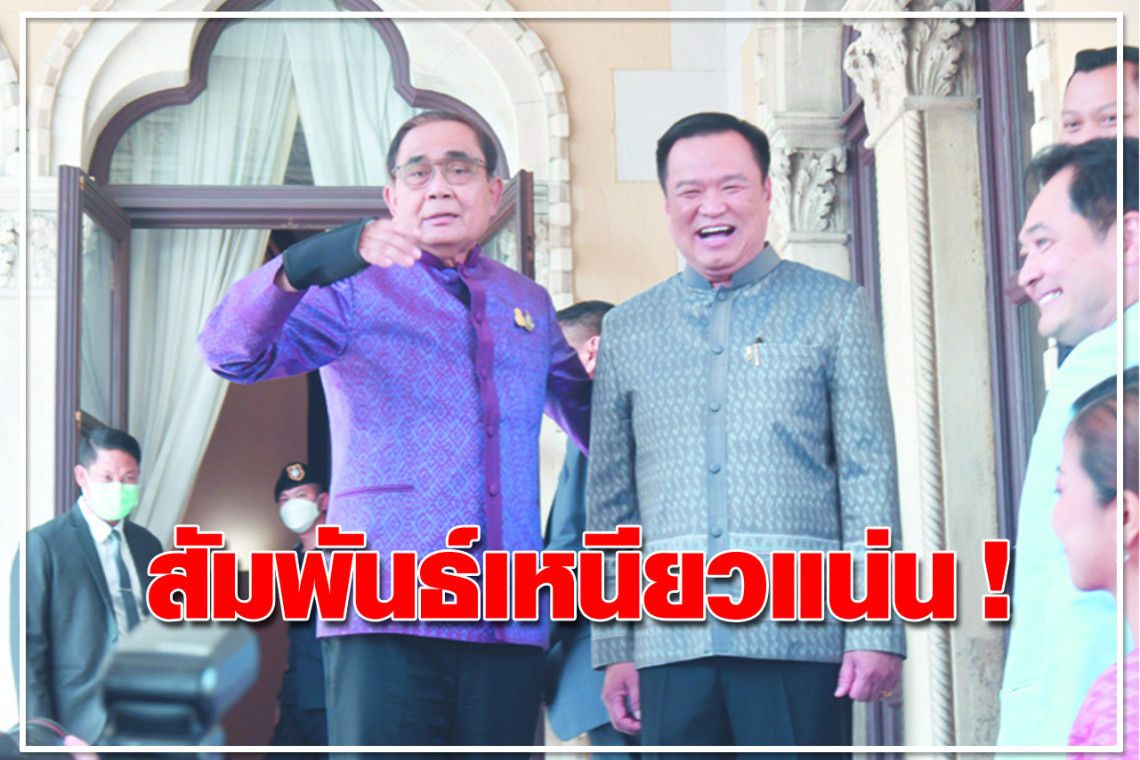 ภาพที่ อนุทิน ชาญวีรกูล รองนายกฯและรมว.สาธารณสุข ในฐานะหัวหน้าพรรคภูมิใจไทย โอบเอว กอดพล.อ.ประยุทธ์ หลังการประชุมครม.ที่ทำเนียบฯ เมื่อวันที่ 21 มี.ค.66 ท่ามกลางบรรยากาศชื่นมื่น เต็มไปด้วยรอยยิ้มและเสียงหัวเราะ ท่ามกลางความสนใจของสื่อมวลชน