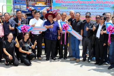 พ่อเมืองร้อยเอ็ด มอบรถเกี่ยวนวดข้าว 3 คัน หนุนสหกรณ์ลดต้นทุนเก็บเกี่ยวผลผลิตข้าวสมาชิก