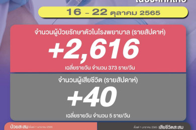 ขยับขึ้น! ยอดโควิดไทยรอบ 7 วัน พบติดเชื้อใหม่ 2,616 ราย ตาย 40 ราย รวมป่วยสะสม 2,466,462 ราย