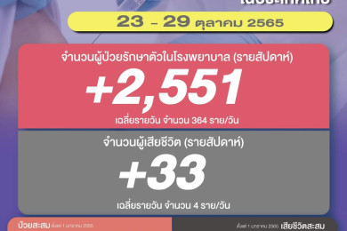 ลดลง! ยอดโควิดไทยรอบ 7 วัน พบติดเชื้อใหม่ 2,551ราย เฉลี่ยวันละ 364 ราย ตาย 33 ราย