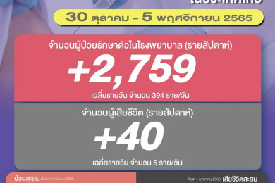 เปิดยอดโควิดไทยรอบ 7 วัน พบติดเชื้อใหม่ 2,759 ราย ตาย 40 ราย รวมป่วยสะสม 2,471,772 ราย