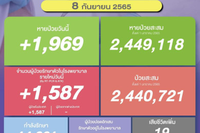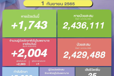 โควิดติดเชื้อใหม่วันนี้ 1,062 ราย ยอด ATK รอบ 1สัปดาห์ลดต่ำกว่า 1.5 แสนราย เสียชีวิต 22 ราย