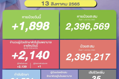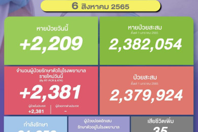 ขยับขึ้นเล็กน้อย! โควิดติดเชื้อใหม่ 1,955 ตาย 33 ยอดป่วย ATK รอบ 1สัปดาห์รวม 2.3 แสนราย