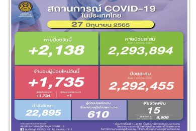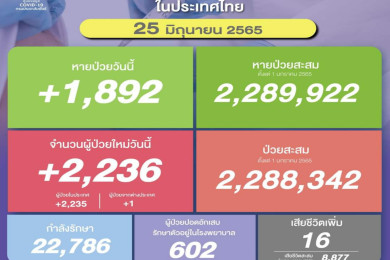 วันนี้โควิดติดเชื้อใหม่เพิ่มขึ้น 2,313 ป่วยปอดอักเสบในรพ. 602 ตายลด 16 หายป่วย 1,489
