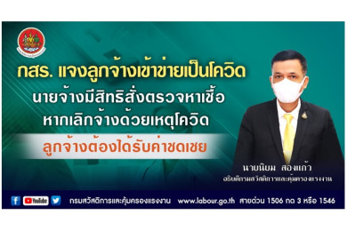 "กสร." แจงลูกจ้างเข้าข่ายเป็นโควิด นายจ้างมีสิทธิสั่งตรวจหาเชื้อ แต่หากเลิกจ้างด้วยเหตุโควิด ลูกจ้างต้องได้รับค่าชดเชย