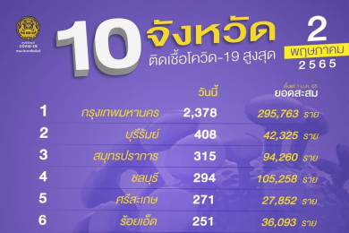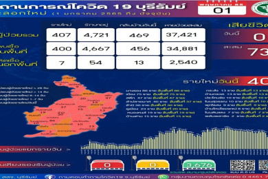 "โควิดบุรีรัมย์" ติดเชื้อรายใหม่ 407 ราย รั้งอันดับ 2 ของประเทศติดต่อกันเป็นวันที่สอง