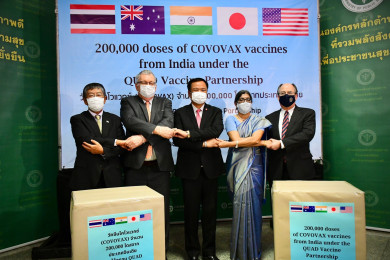 สธ.รับมอบวัคซีนโควิด "COVOVAX" 2 แสนโดสจากกลุ่มประเทศ QUAD