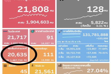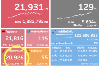 ATK" ลดลง! 20,635 รวมยอดติดเชื้อรายวัน 42,443 ราย