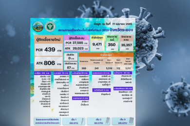 โควิด 'ระยอง' ยอดติดเชื้อเพิ่ม 439 ราย ป่วยสะสม 83,775 ราย
