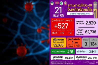 "โควิดร้อยเอ็ด" ติดเชื้อใหม่ 527 รายใน 19 อำเภอเสียชีวิต 3 ราย