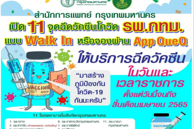 กทม.เปิด "Walk In" ฉีดวัคซีน รพ.สังกัดกทม.11 แห่ง รับทุกสิทธิ์