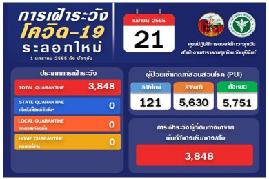 "โควิดชลบุรี"ดับ 5 รายติดเชื้อ 885 ไม่นับผลตรวจ ATK 5,848 ราย