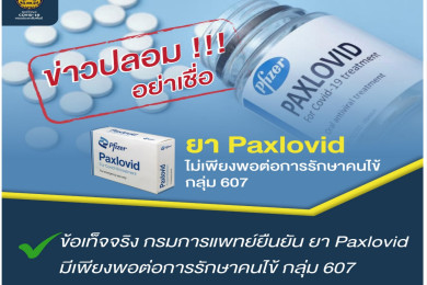 "กรมการแพทย์" ยันข่าวปลอมอย่าเชื่อ!! ยา"แพ็กซ์โลวิด" ไม่เพียงพอรักษาคนไข้กลุ่ม 607