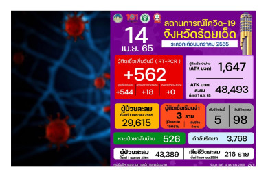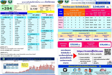 โควิด-19 ระยอง ไร้เสียชีวิต ยอดติดเชื้อรายวันพบเพิ่ม 312 ราย ติดเชื้อสะสม 82,264 ราย