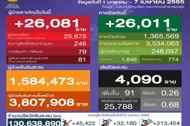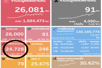 โควิดชลบุรี เสียชีวิต 3 ราย ติดเชื้อรายใหม่พุ่งสูง จากตรวจ RT-PCR 1,542 ราย ไม่นับผลตรวจ ATK 5,833 ราย