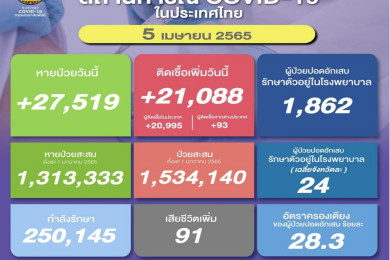 ดับเซ่นโควิด-19 ระยองรายวันเพิ่มอีก 2 ราย ยอดติดเชื้อพบเพิ่ม 592 ราย ติดเชื้อสะสม 78,289 ราย