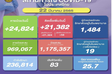ยอดดับสูงต่อเนื่อง! 83 รายพบสูงสุด "กทม." 11 ราย ติดเตียง 4 ปอดอักเสบ"กทม." ครองเตียง 196