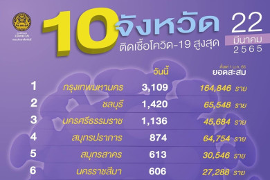 "กทม." ดีดอีก! 3,109 "ชลฯ" แซง "เมืองคอน" ขึ้นรองแชมป์ "โคราช-นครปฐม" ติดเชื้อพุ่ง