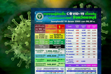 'ชลบุรี' ติดเชื้อรายใหม่ 978 ราย เสียชีวิตเพิ่ม 3 ราย