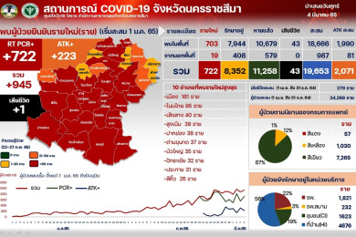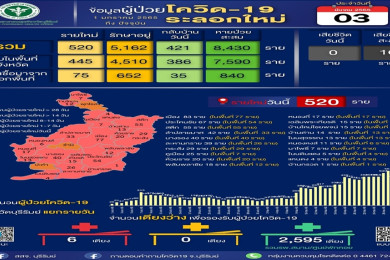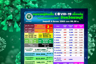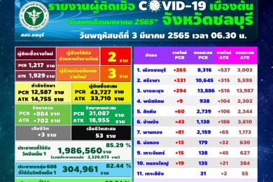โควิดชลบุรี พบผู้ติดเชื้อรายใหม่ 1,217 ราย เสียชีวิต 3 ราย ติดเชื้อสะสม 43,727 ราย
