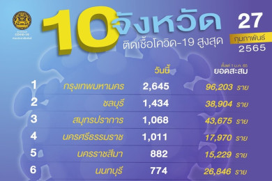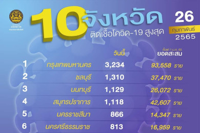 โควิดชลบุรี พุ่งต่อเนื่องติดเชื้อหลักพัน 4 วันติดต่อ วันนี้ติดเชื้อ 1,310 ราย เสียชีวิต 2 ราย