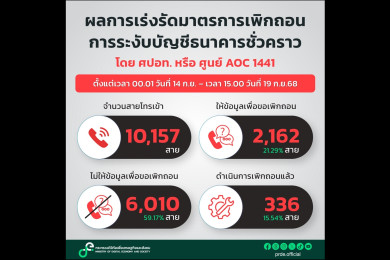 “สอท.”จับมือ “ธนาคาร–ปปง.” เร่งปลดอายัดบัญชีผู้บริสุทธิ์ทันที หากไม่ใช่บัญชีม้า เตือนมิจฉาชีพแฝงตัวเจอดำเนินคดี
