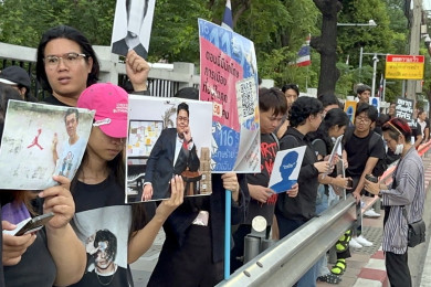 แนวร่วม มธ.-ไอลอว์ จัดกิจกรรม “ใส่เสื้อดำ จำชื่อเพื่อน” หน้าศาลอาญา ไว้อาลัยนักโทษการเมือง-จี้ รบ.อนุทินแก้ รธน.