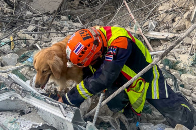 ‘ซาฮารา’ สุนัข K9 เห่าส่งสัญญาณบริเวณรอยต่อ A -D บ่งชี้ว่า มีผู้สูญหายติดค้าง จนท.เร่งใช้เครื่องจักรหนักค้นหา