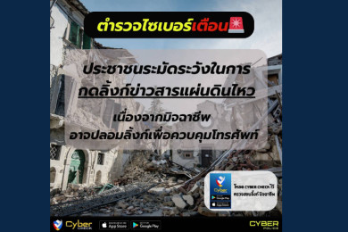 ตร.เตือน! ระวังมิจฉาชีพอาศัยเหตุการณ์แผ่นดินไหว ส่งลิงก์ข่าวปลอม หลอกติดตั้งแอปควบคุมมือถือ