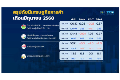เงินเฟ้อไทย มิ.ย.68 ลดลง 3 เดือนติด -0.25% ต้่ำสุดในอาเซียน คงเป้าทั้งปี 0.0–1.0%