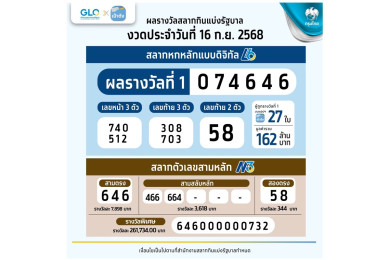 เศรษฐีใหม่! สลากดิจิทัล แอปฯเป๋าตัง ถูกรางวัลที่ 1 จำนวน 27 ใบ 162 ล้าน คนเดียว 2 ใบ รับ 12 ล้าน