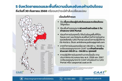"การบินพลเรือน" ออกประกาศฉบับที่ 6 ยังห้ามบินโดรนในพื้นที่ 5 จังหวัดชายแดน -พื้นที่ความมั่นคง