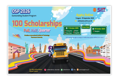 SIIT ม.ธรรมศาสตร์ เปิดสอบชิงทุน OSP 2026 เรียนวิศวะอินเตอร์ฟรี 4 ปี 100 ทุนสมัครได้ถึง 19 ก.ย.นี้