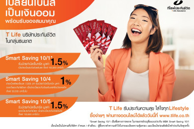 ที ไลฟ์ ประกันชีวิต ชวนเปลี่ยนโบนัสเป็นเงินออมด้วยแบบประกัน Smart Saving พร้อมรับบัตรกำนัลเซ็นทรัล