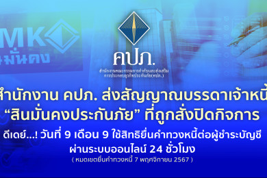 ดีเดย์...! วันที่ 9 เดือน 9 เจ้าหนี้สินมั่นคงประกันภัยใช้สิทธิยื่นคำทวงหนี้ต่อผู้ชำระบัญชีผ่านออนไลน์ 24 ชั่วโมง ก่อนหมดเขตยื่น 7 พ.ย.นี้