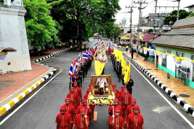 พสกนิกรชาวจังหวัดลพบุรี ร่วมจิตอธิษฐานประกอบพิธีพลีกรรมตักน้ำพระพุทธมนต์ศักดิ์สิทธิ์และเคลื่อนขบวนอัญเชิญน้ำศักดิ์สิทธิ์ผ่านโบราณ