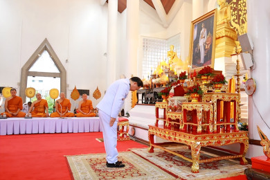 อ่างทอง จัดพิธีเจริญพระพุทธมนต์ - ตักบาตรถวายพระราชกุศล 100 ปี วันพระบรมราชสมภพ ร.8