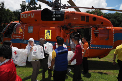แม่ฮ่องสอนลำเลียงถุงยังชีพทางเฮลิคอปเตอร์ ช่วยผู้ประสบอุทกภัยบ้านหนองเขียว ถนนตัดขาด 7 วัน