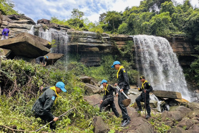 "ชาววังน้ำเขียว" จับมือ "อุทยานทับลาน" ทำความสะอาด น้ำตกม่านฟ้า น้ำตกชื่อดัง ต้อนรับฤดูกาลท่องเที่ยว