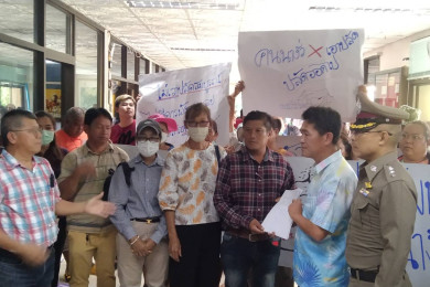 ชาวบ้านนับร้อย รวมตัวบุกชูป้ายขับไล่ปลัดเทศบาลตำบลนางั่ว อ้างแก้ปัญหาให้ปชช.ไม่ได้