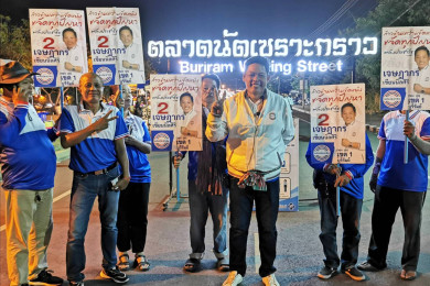 “รองปุย” เขต 1 "พปชร." บุรีรัมย์ ลุยหาเสียง จ๊ะเอ๋ ผู้สมัคร "ก้าวไกล" เปรย เราจะก้าวข้ามความขัดแย้ง