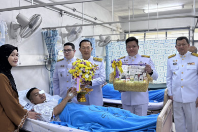 "ในหลวง" โปรดเกล้าฯให้ผู้ว่าฯจ.นราธิวาส เชิญดอกไม้และตะกร้าสิ่งของพระราชทาน ไปมอบให้ จนท.ได้รับบาดเจ็บจากเหตุคนร้ายใช้อาวุธปืนยิงใส่เจ้าหน้าที่