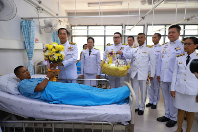 ในหลวงโปรดเกล้าฯรองผู้ว่าฯยะลาเชิญดอกไม้และตะกร้าสิ่งของพระราชทานมอบแก่จนท.ที่ได้รับบาดเจ็บจากคนร้ายลอบวางระเบิด