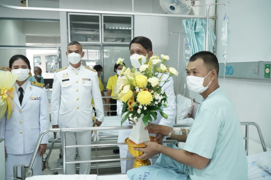 'ในหลวง'โปรดเกล้าฯ ผู้ว่าฯยะลาเชิญดอกไม้และตะกร้าสิ่งของพระราชทานมอบให้ทหารพรานที่ได้รับบาดเจ็บจากการปฏิบัติหน้าที่