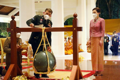 “ในหลวง-พระราชินี” เสด็จฯไปทรงตัดหวายลูกนิมิตอุโบสถ ณ วัดป่านานาชาติ จ.อุบลราชธานี