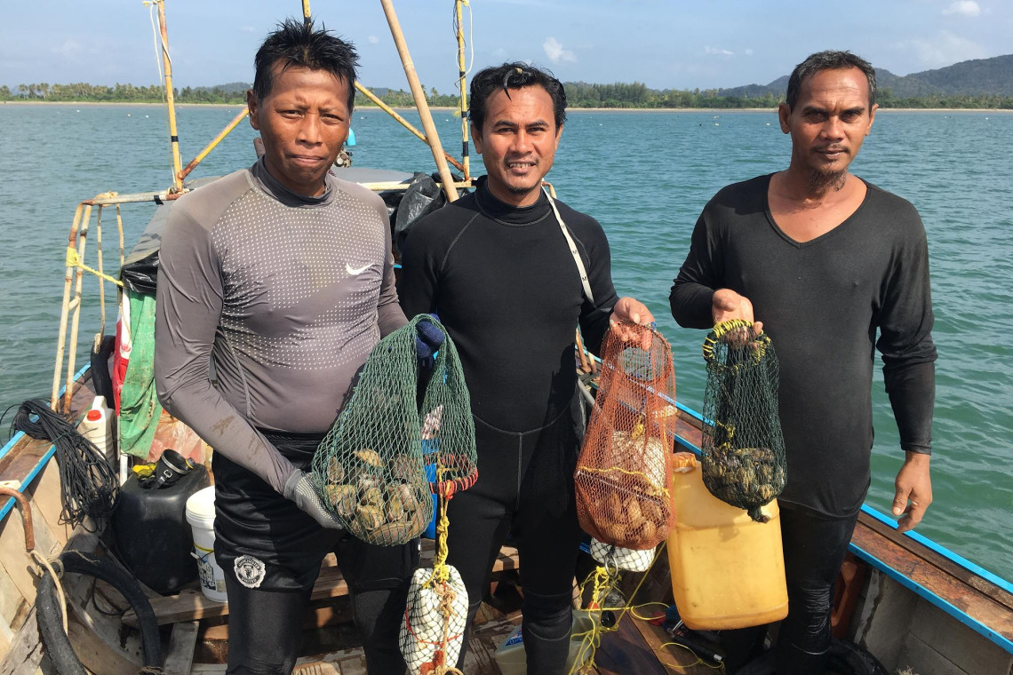 ด้านนายอับดุลรอหมาน อินหมัน อายุ 42 ปี นายพรานนักล่าหอยท้ายเภาอีกคน บอกว่า ตนมากับเพื่อน ๆ นำเรือออกมาลอยลำเพื่อเป็นที่พักก่อนลงไปดำน้ำเก็บหอย โดยจะมีตีนกบ หน้ากาก หินถ่วง เคยต้องดำเก็บหอยลึกสุด 6 เมตร เลือกที่จะทำเพราะเป็นอาชีพ และมีรายได้ดี ทำมา 12 ปีแล้ว โดยใน 1 ปีจะหาหอยได้เพียง 5-6 เดือนเท่านั้น เพราะน้ำทะเลจะขุ่น ราคา 25-30 ตัวต่อกิโลกรัม ขายได้กิโลกรัมละ 450 บาท ถึง 500 บาท ออกมาหาวันละ 2-3 กิโลกรัมก็สร้างครอบครัวได้แล้ว หมดฤดูหาหอยก็จะไปหาปลาทรายแทน หมุนเวียนอยู่แบบนี้ สำหรับวิถีประมงพื้นบ้าน