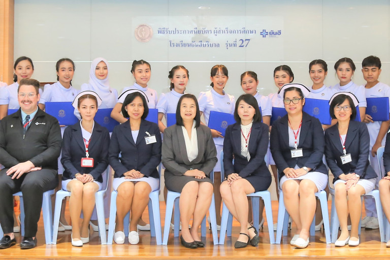 ศจี วงษ์บุญชา ผอ.การฝ่ายบริหาร รร.ยันฮีบริบาล เป็นประธานมอบใบประกาศนียบัตร แก่นักเรียนรร.ยันฮีบริบาล ที่จบหลักสูตรผู้ช่วยเหลือคนไข้, การดูแลผู้สูงอายุ และการดูแลเด็กเล็ก ณ รพ.ยันฮี พร้อมทั้งแจ้งข่าวดีสำหรับในปีการศึกษา 2563 นี้ ทางรร.ยันฮีบริบาล เปิดรับสมัครนักเรียนรุ่นที่ 30 หลักสูตรระยะสั้น 6 เดือน จบแล้วทำงานได้ทันที ท่านที่สนใจสมัครด้วยตนเองได้ที่แผนกบุคคล ตั้งแต่วันนี้ - 25 มกราคม 2563 หรือโทร 1723 ต่อ 57973